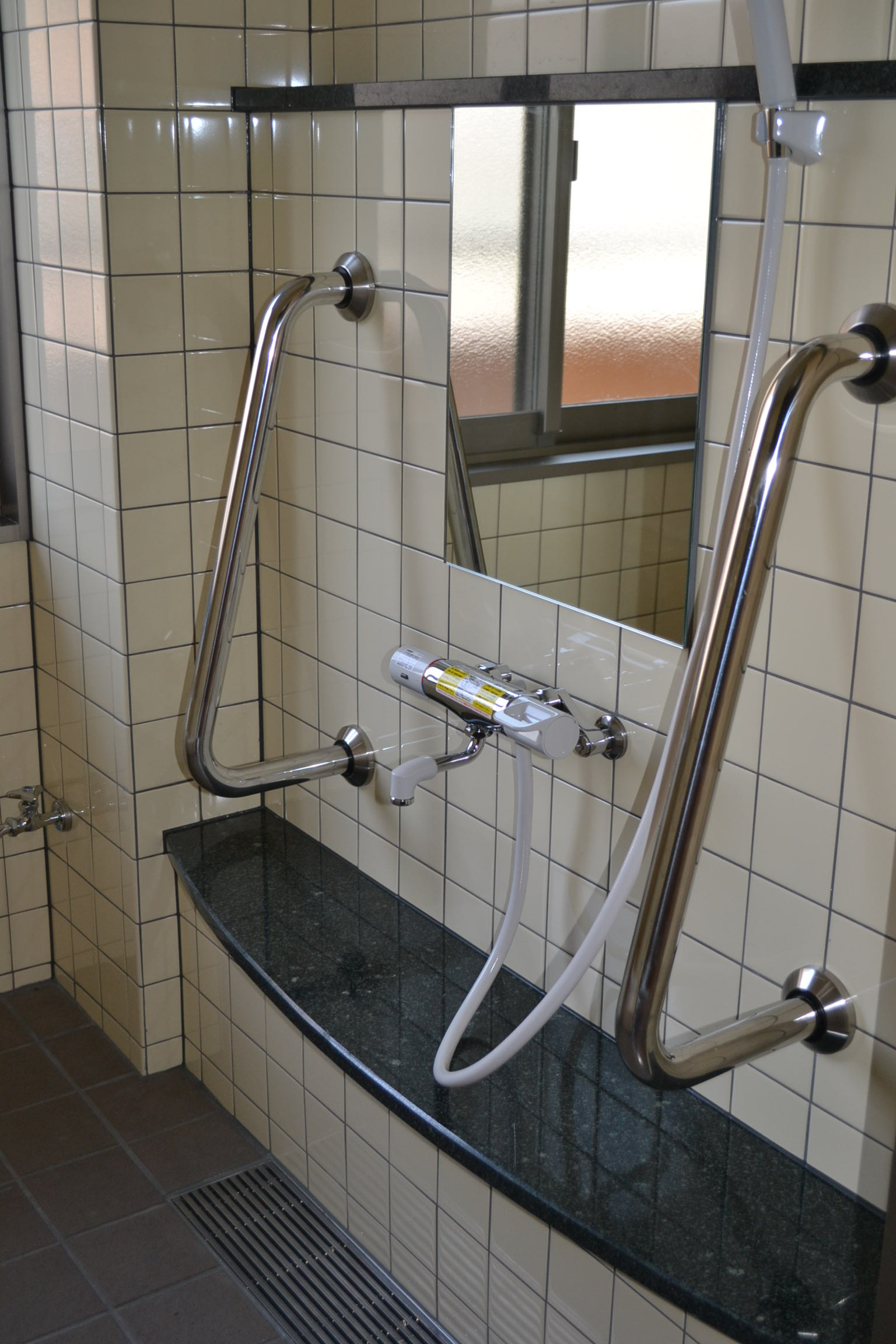 温泉気分で入れる、ゆったりとした岩風呂です。
